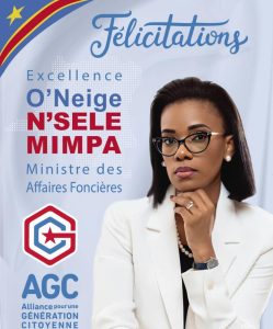 Nommination de O’Neige Nsele : L’AGC Muanda félicite la nouvelle Ministre des Affaires foncières