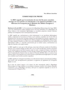 Dans ce contexte, poursuit le communiqué, toute annonce relative à la nomination d’un consul à Goma est jugée « inappropriée » et ne peut être considérée sans l’aval des autorités congolaises.